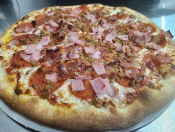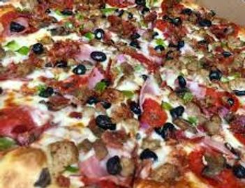 Pepperoni, Sausage, Bacon, Mushrooms, Ham, Broccoli, Green Peppers, Onions, Black Olives, jalapeno