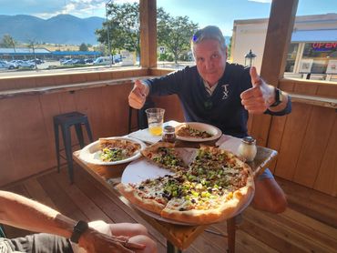 John and Ron have known each other since 6th grade in New Jersey, where they worked at the small town pizzeria throughout high school and college breaks. After relocating to Colorado in 1997 and 2000, John and Ron would talk for years about starting a pizza business. We're good at it, let's roll some dough! They finally decided to bring the recipe they learned in the Garden State here to the front range in the form of a pizza trailer.